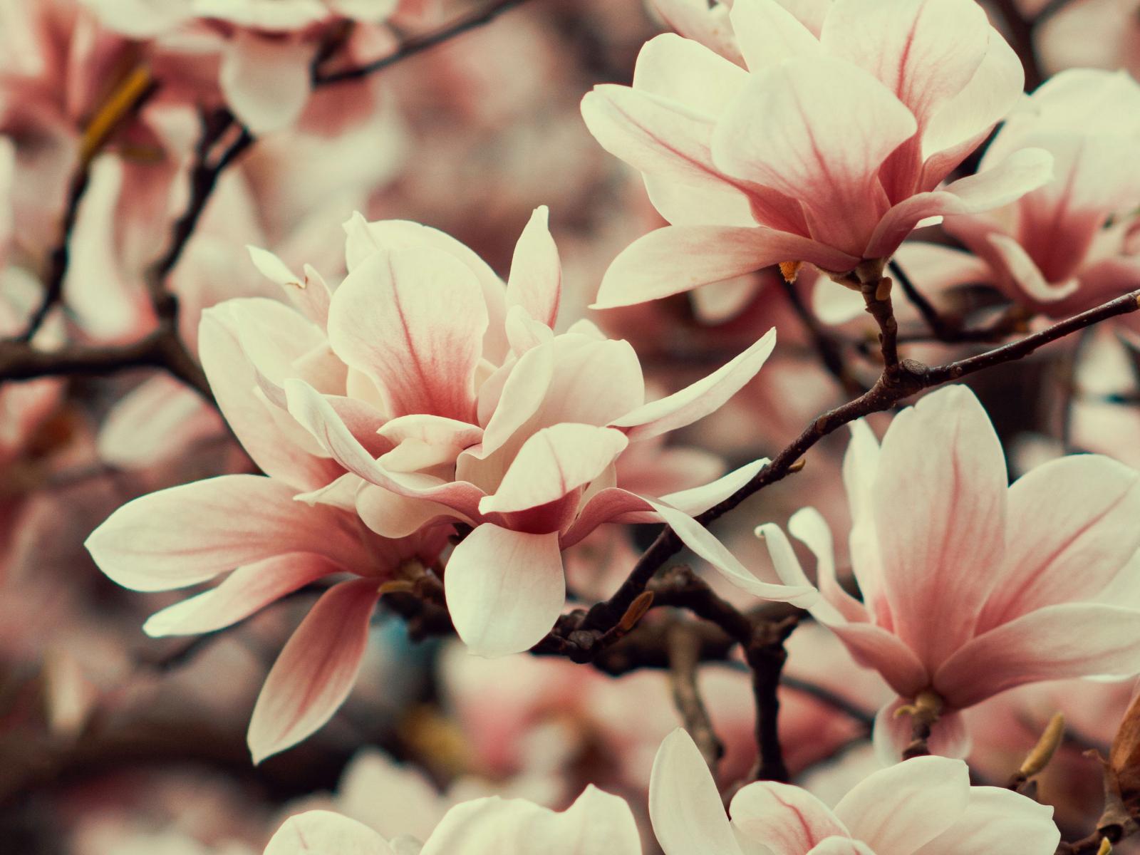 Обои Розовые цветы магнолии на ветке дерева