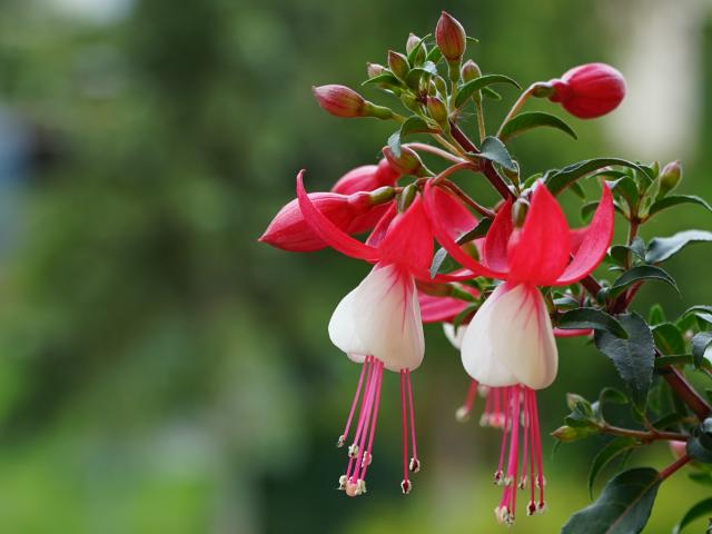 Обои Розовые цветы фуксии с бутонами на ветке