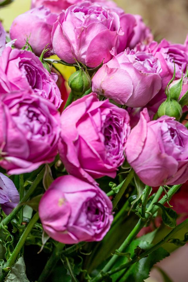 Обои Розовые розы с бутонами в букете с цветами альстромерии