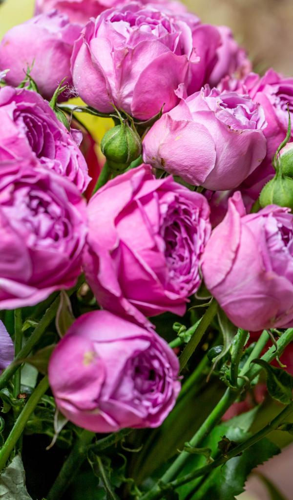 Обои Розовые розы с бутонами в букете с цветами альстромерии