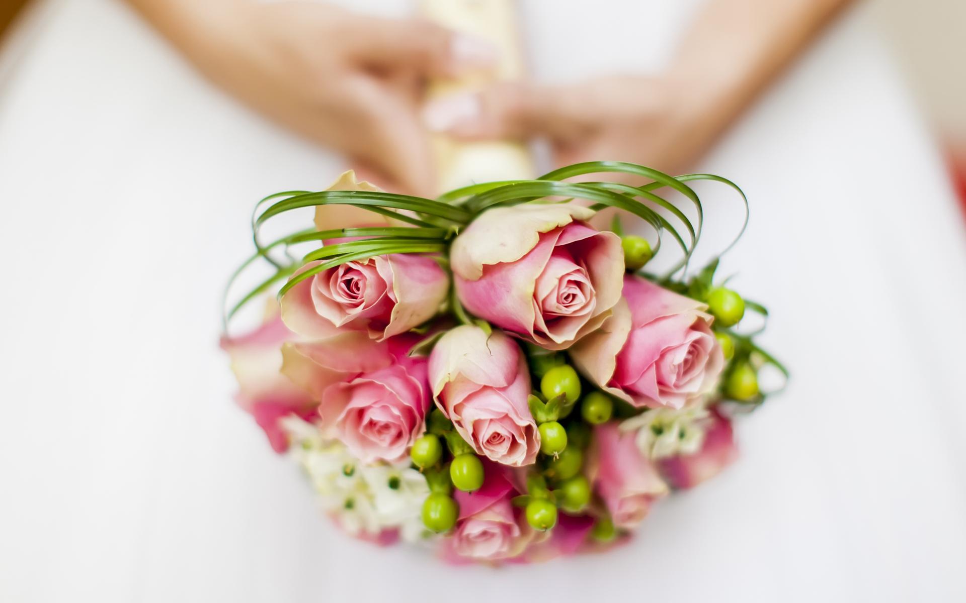 Обои Свадебный букет из розовых роз в руках у невесты