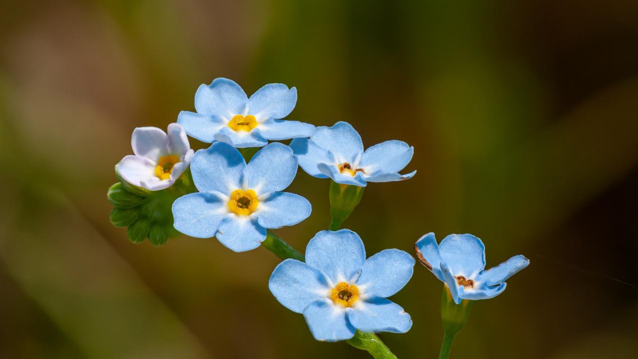 Обои Голубые маленькие цветы незабудки в лучах солнца