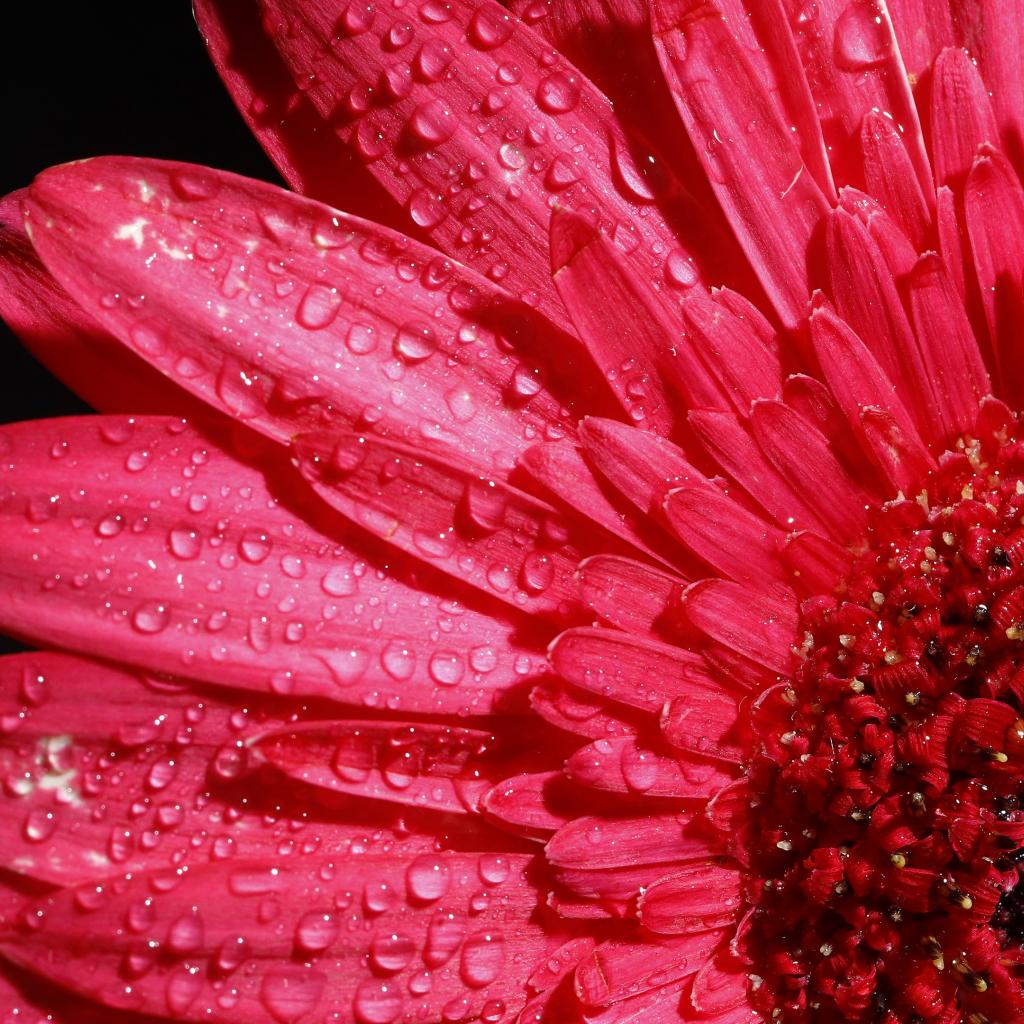 Обои Розовый цветок герберы в каплях росы на черном фоне