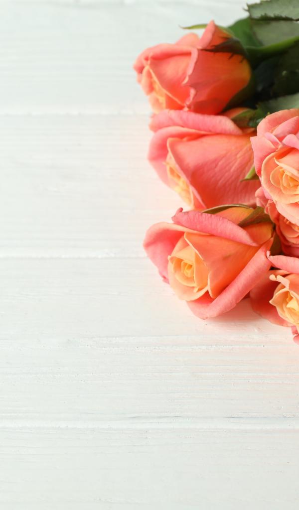 Обои Букет нежных розовых роз на белом фоне