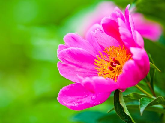 Обои Розовый цветок пиона на зеленом фоне крупным планом