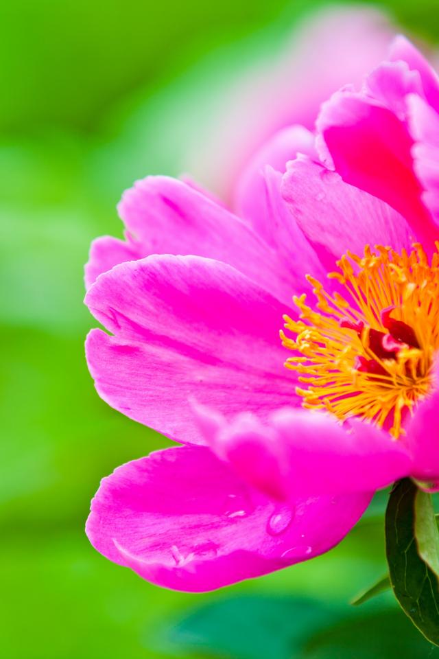 Обои Розовый цветок пиона на зеленом фоне крупным планом