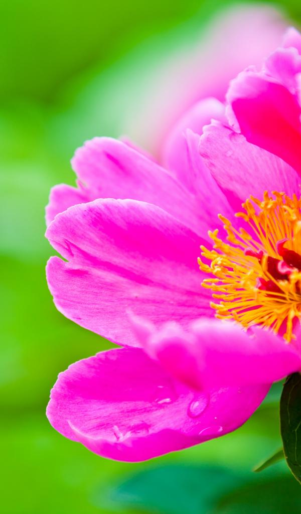 Обои Розовый цветок пиона на зеленом фоне крупным планом