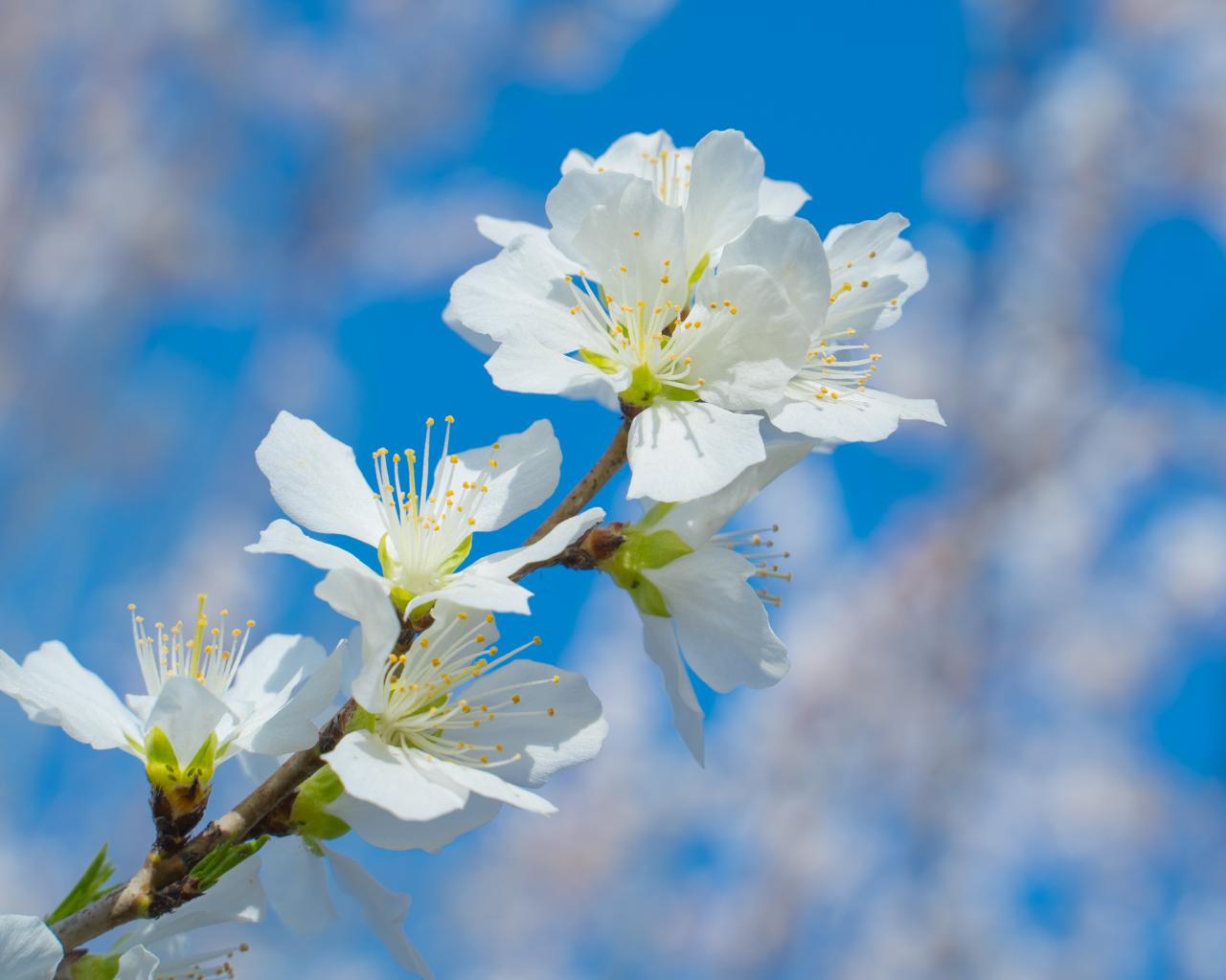 Обои Белые цветы на ветке дерева на фоне неба