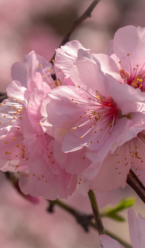 Обои Много розовых цветов сакуры на ветке
