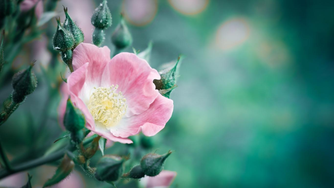 Обои Розовый цветок розы с бутонами крупным планом