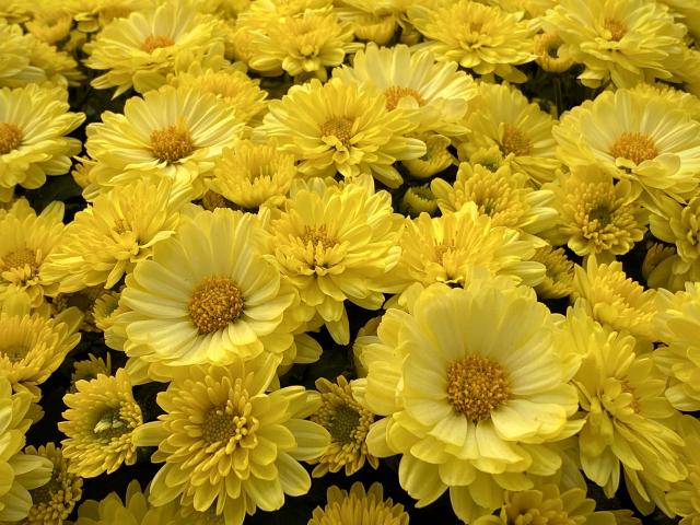 Обои Много красивых желтых цветов хризантемы