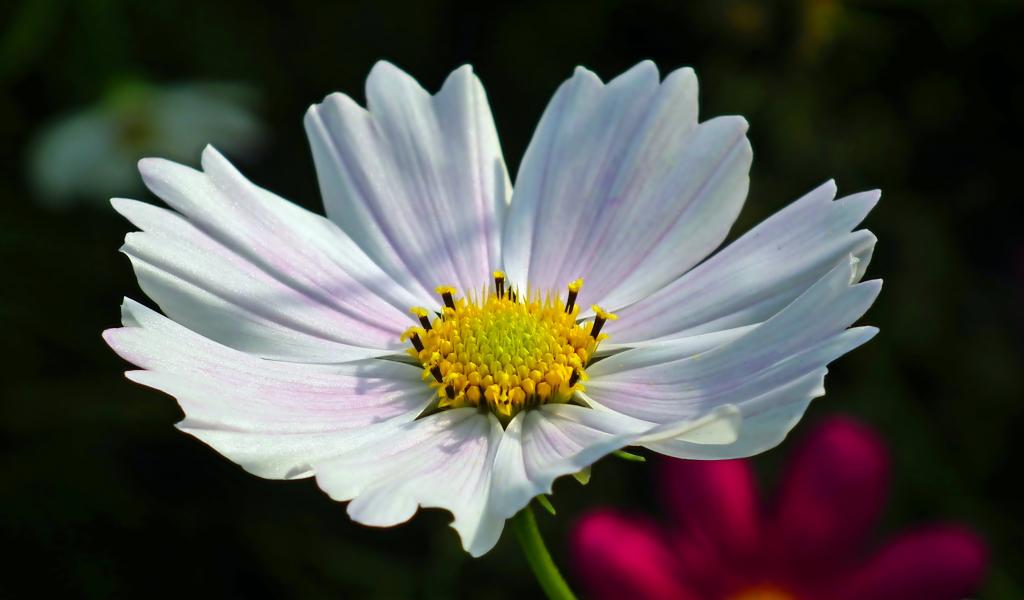 Обои Белый цветок Космеи в лучах солнца