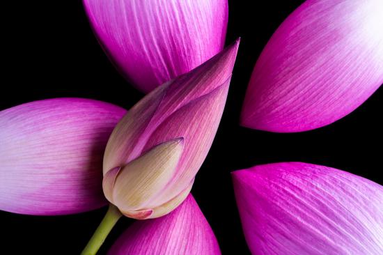 Обои Розовые бутоны Лотоса на черном фоне