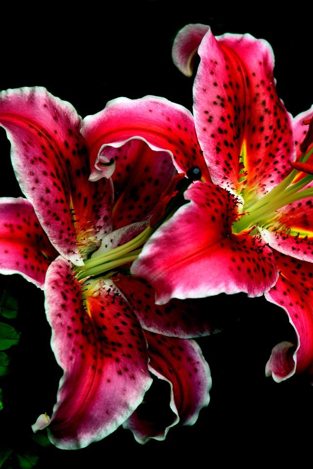 Обои Розовые цветы тигровой лилии крупным планом на черном фоне