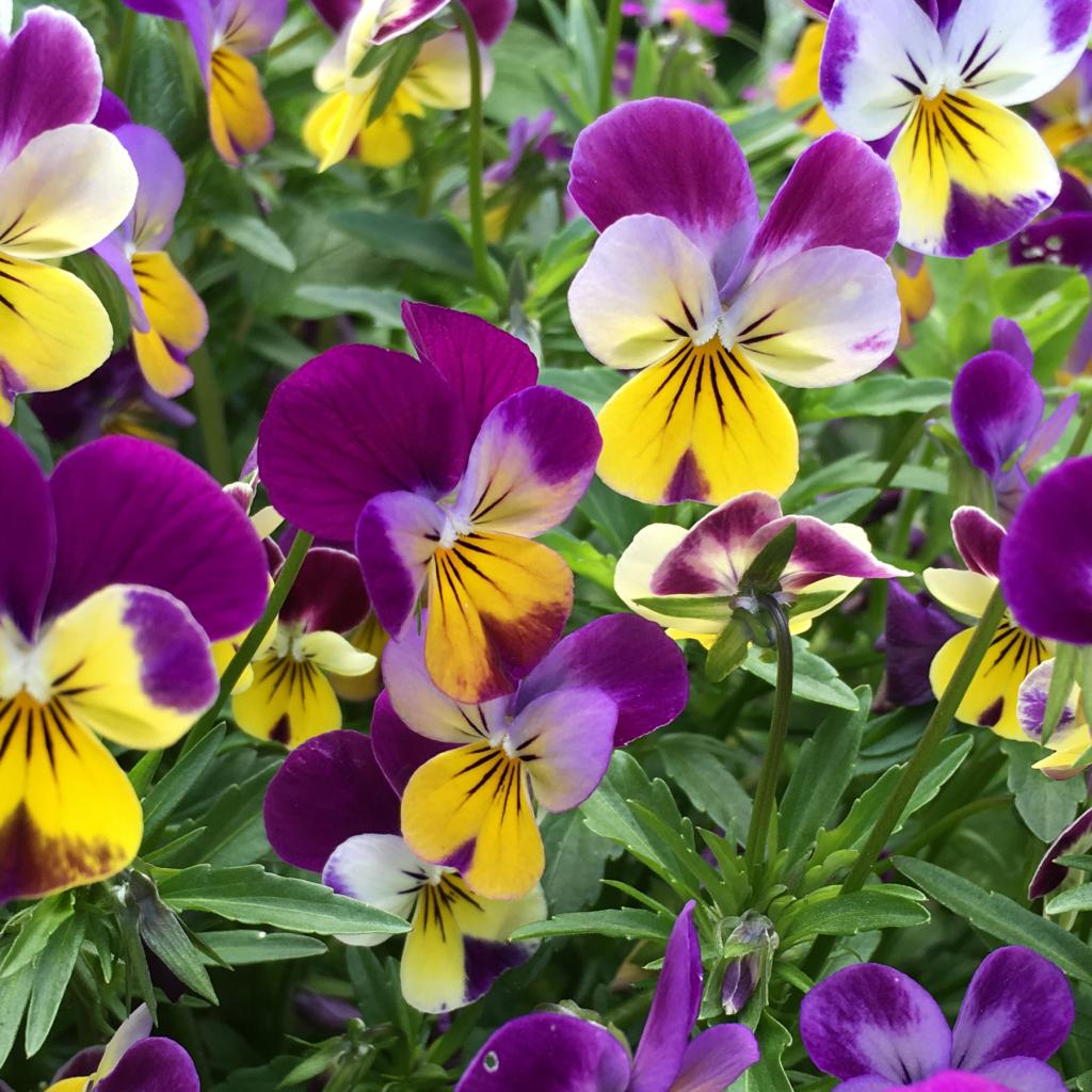 Обои Нежные садовые цветы анютины глазки на клумбе