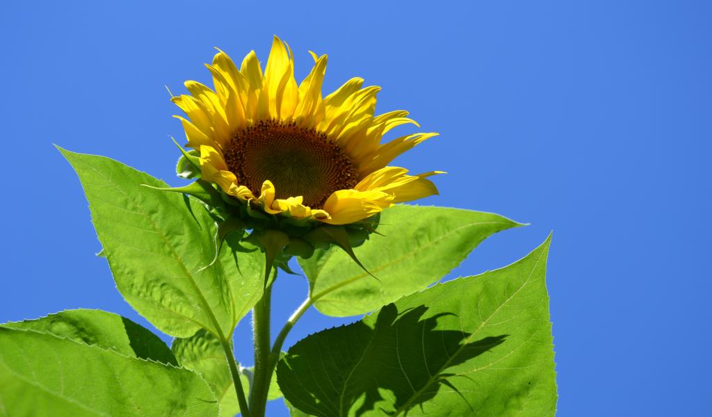Обои Желтый цветок подсолнуха в лучах солнца на фоне голубого неба