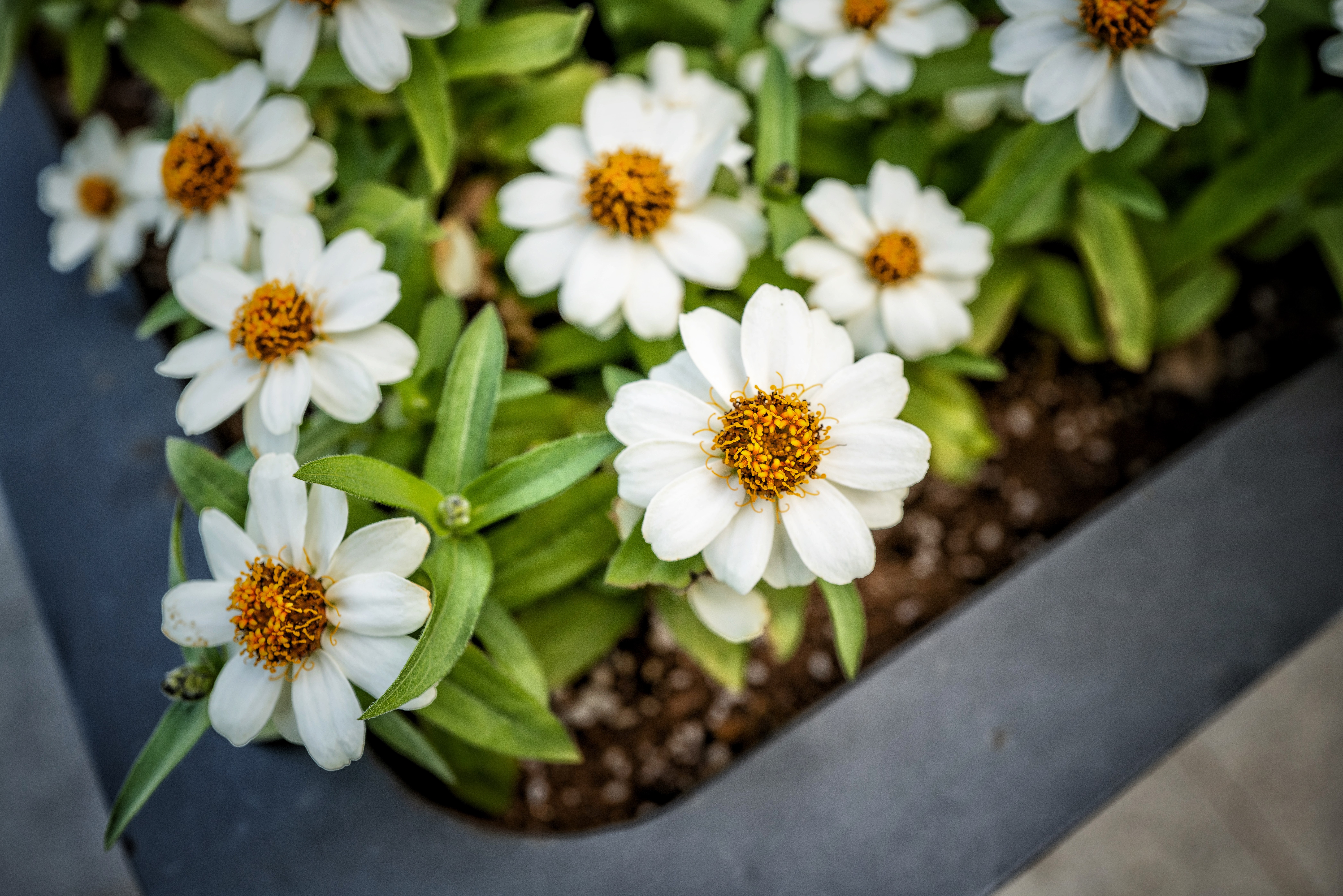 Обои Маленькие белые цветы в кашпо на окне