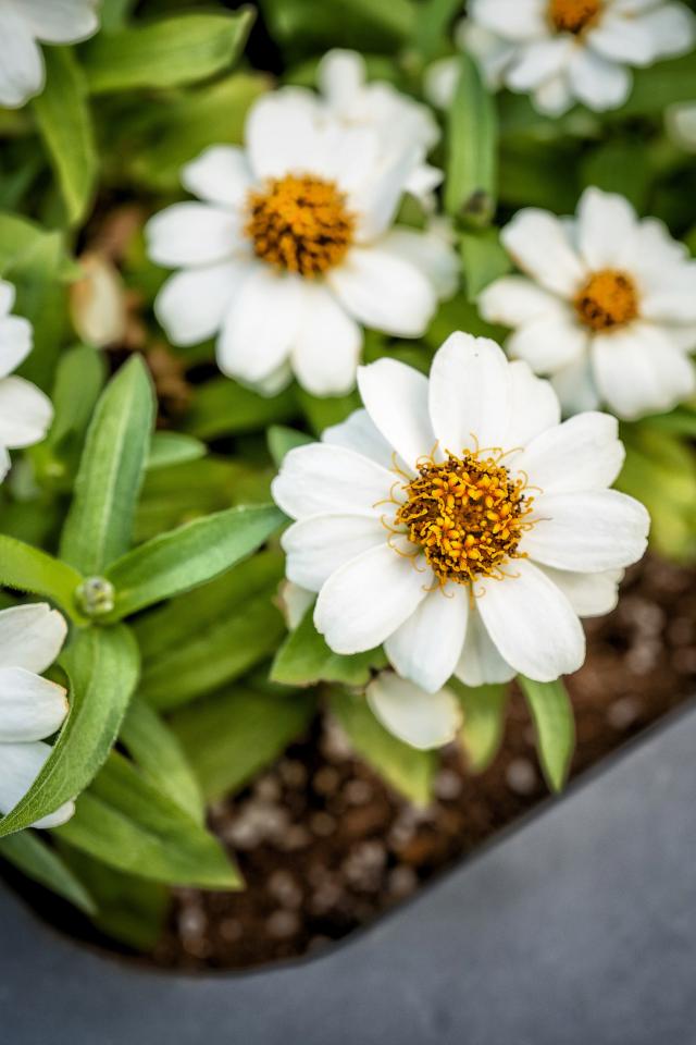 Обои Маленькие белые цветы в кашпо на окне