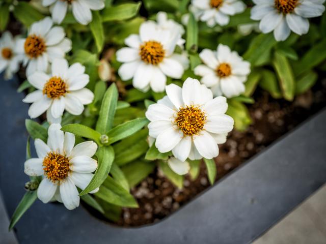 Обои Маленькие белые цветы в кашпо на окне