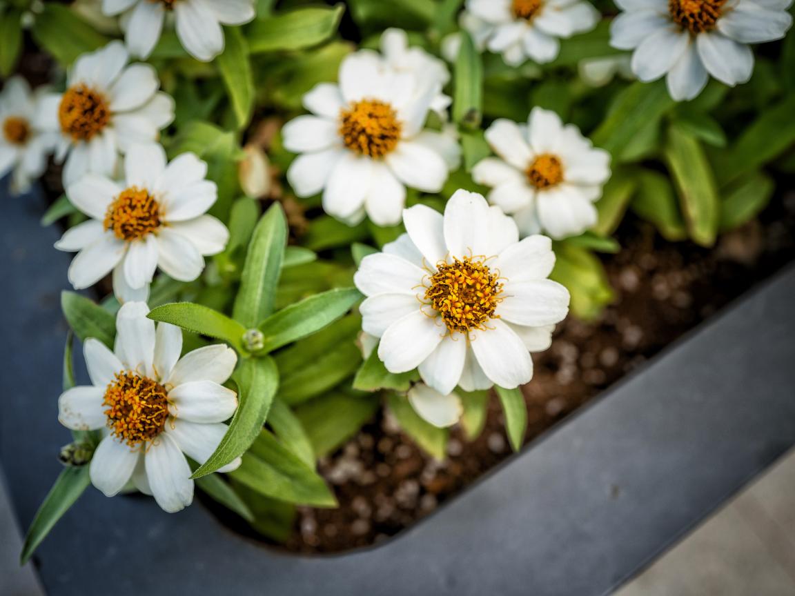 Обои Маленькие белые цветы в кашпо на окне
