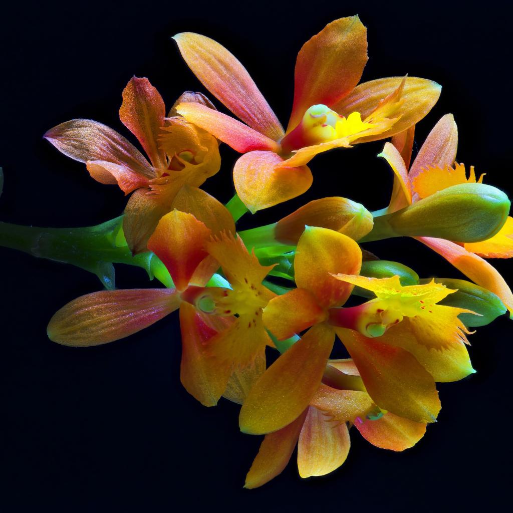 Обои Оранжевые цветы орхидеи на черном фоне крупным планом