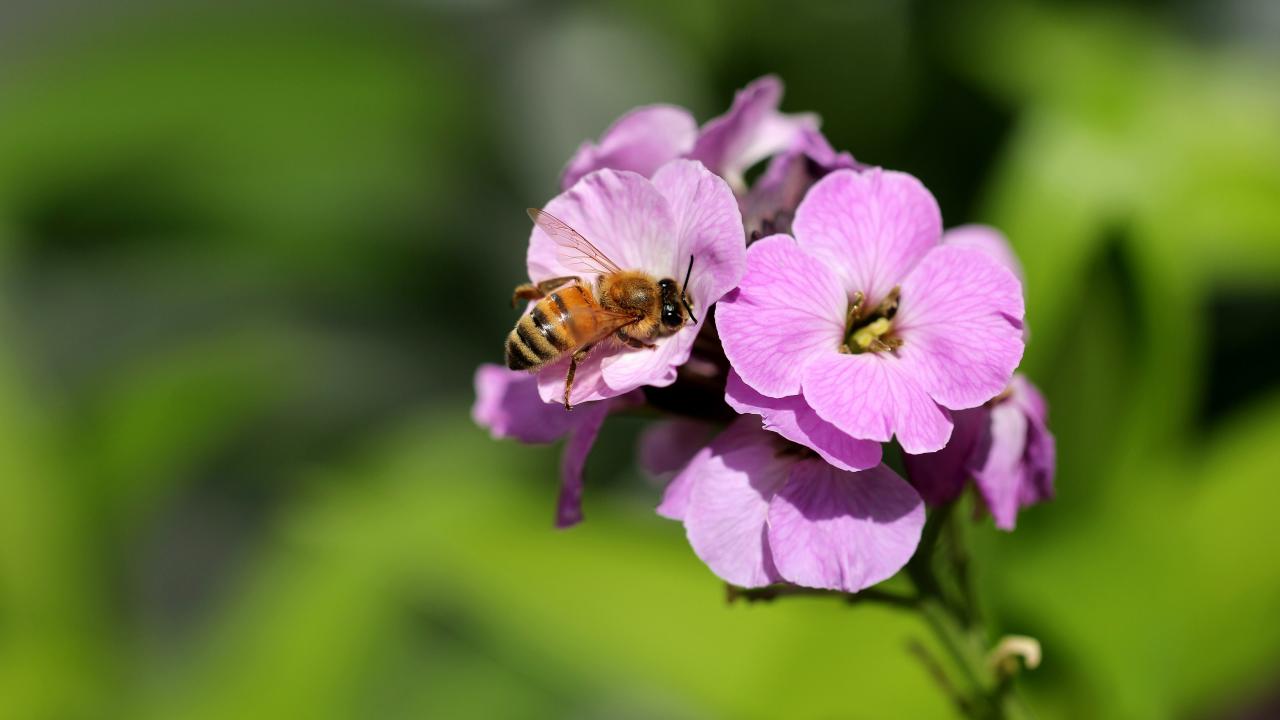Обои Розовый цветок флокса с пчелой