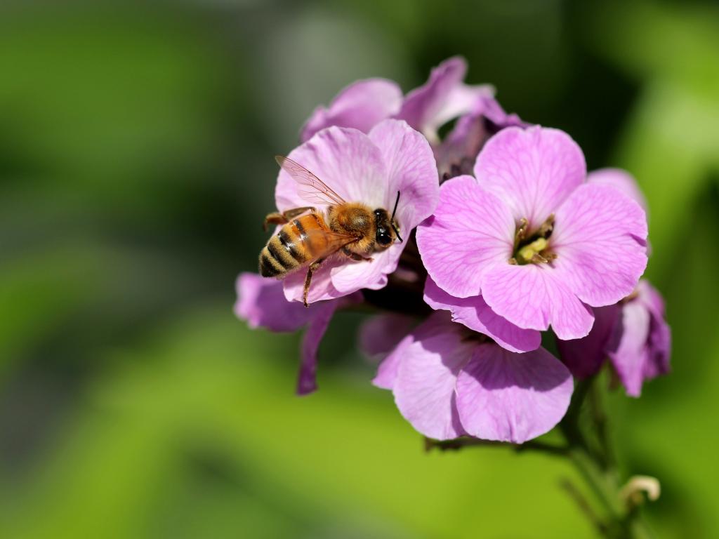 Обои Розовый цветок флокса с пчелой