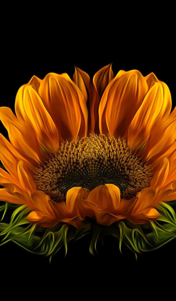 Обои Цветок подсолнуха на черном фоне