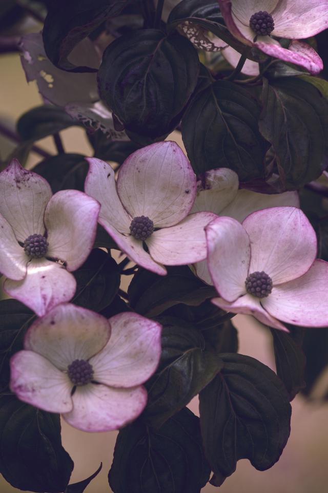 Обои Розовые цветы с зелеными листьями на дереве