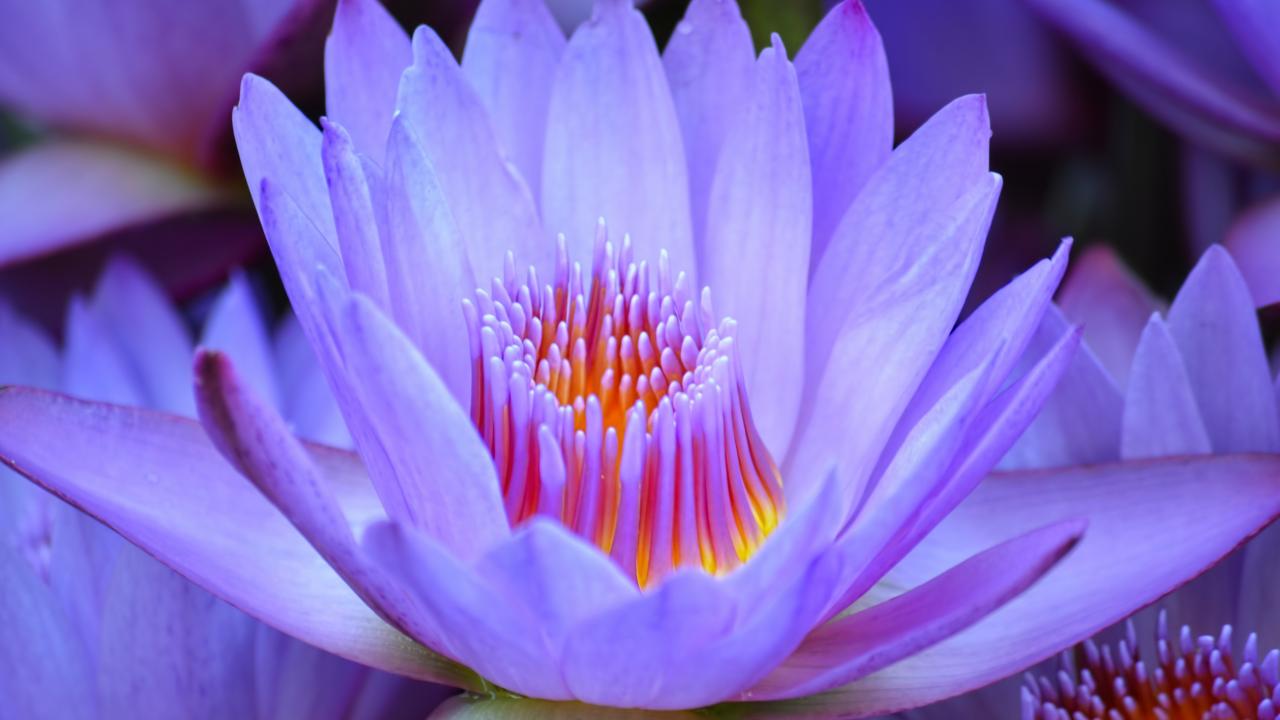 Обои Красивый нежный фиолетовый цветок лотоса крупным планом