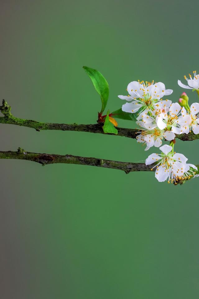 Обои Нежные белые цветы вишни на ветке весной