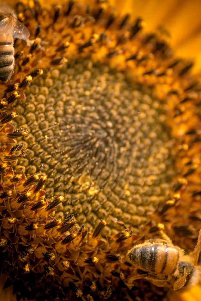 Обои Пчелы собирают нектар с цветка подсолнуха
