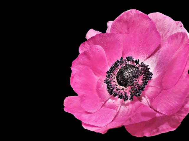 Обои Красивый розовый цветок анемона на черном фоне