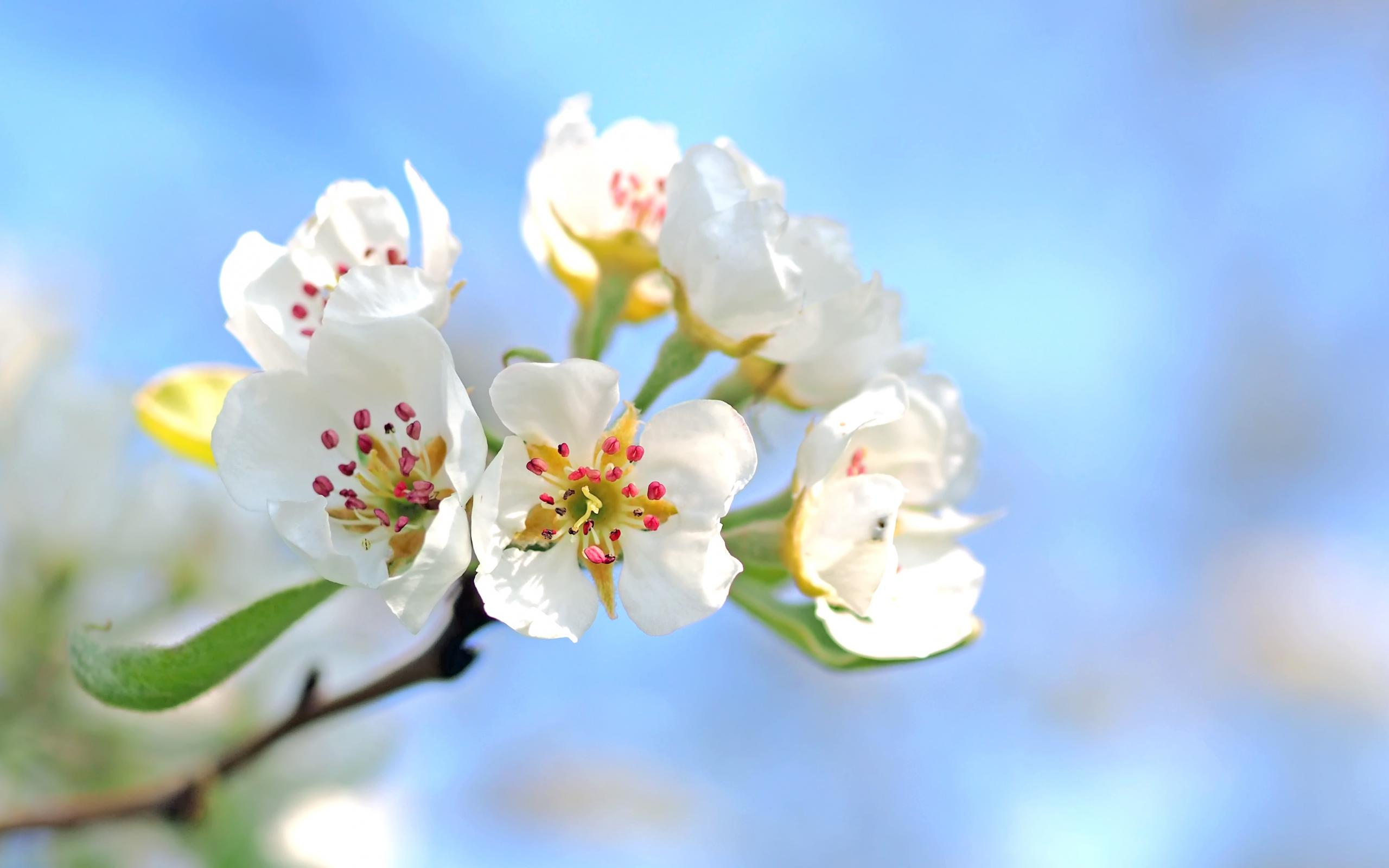 Обои Красивые нежные белые цветы груши на фоне голубого неба