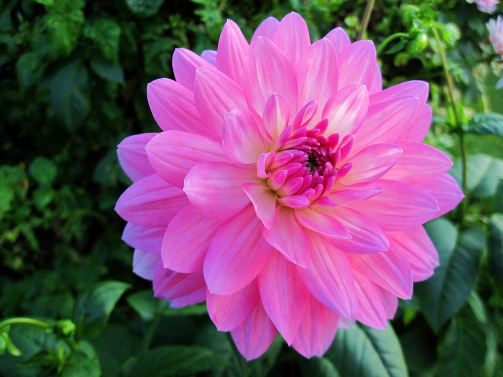 Обои Красивый крупный розовый цветок георгины на клумбе