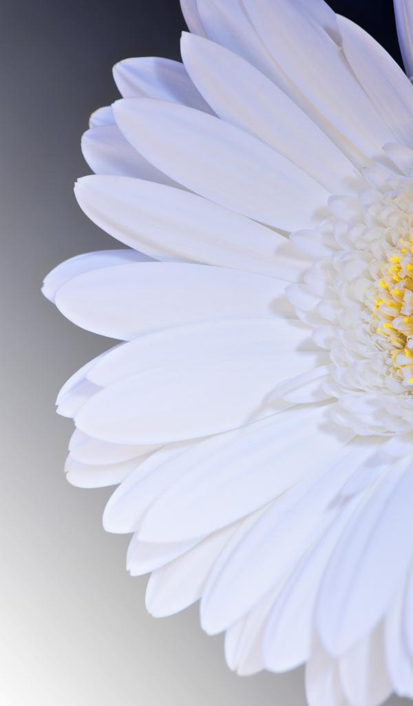 Обои Белый цветок гербера на сером фоне крупным планом