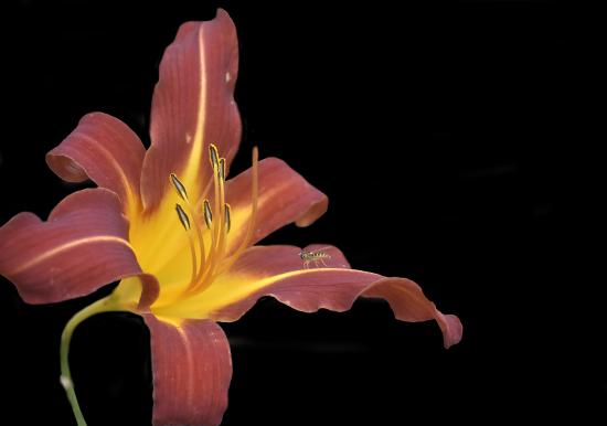 Обои Оранжевый цветок лилии на черном фоне