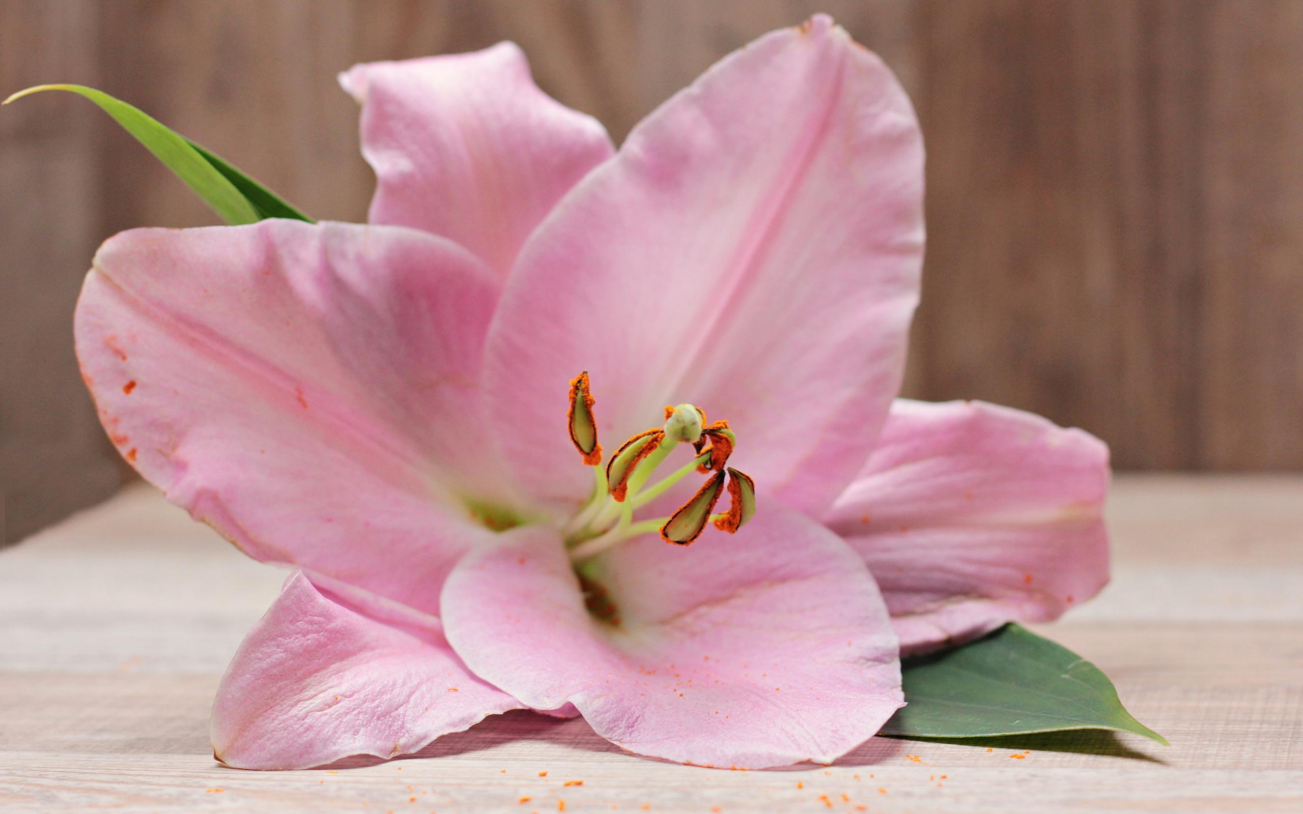 Обои Красивая нежная розовая лилия на столе