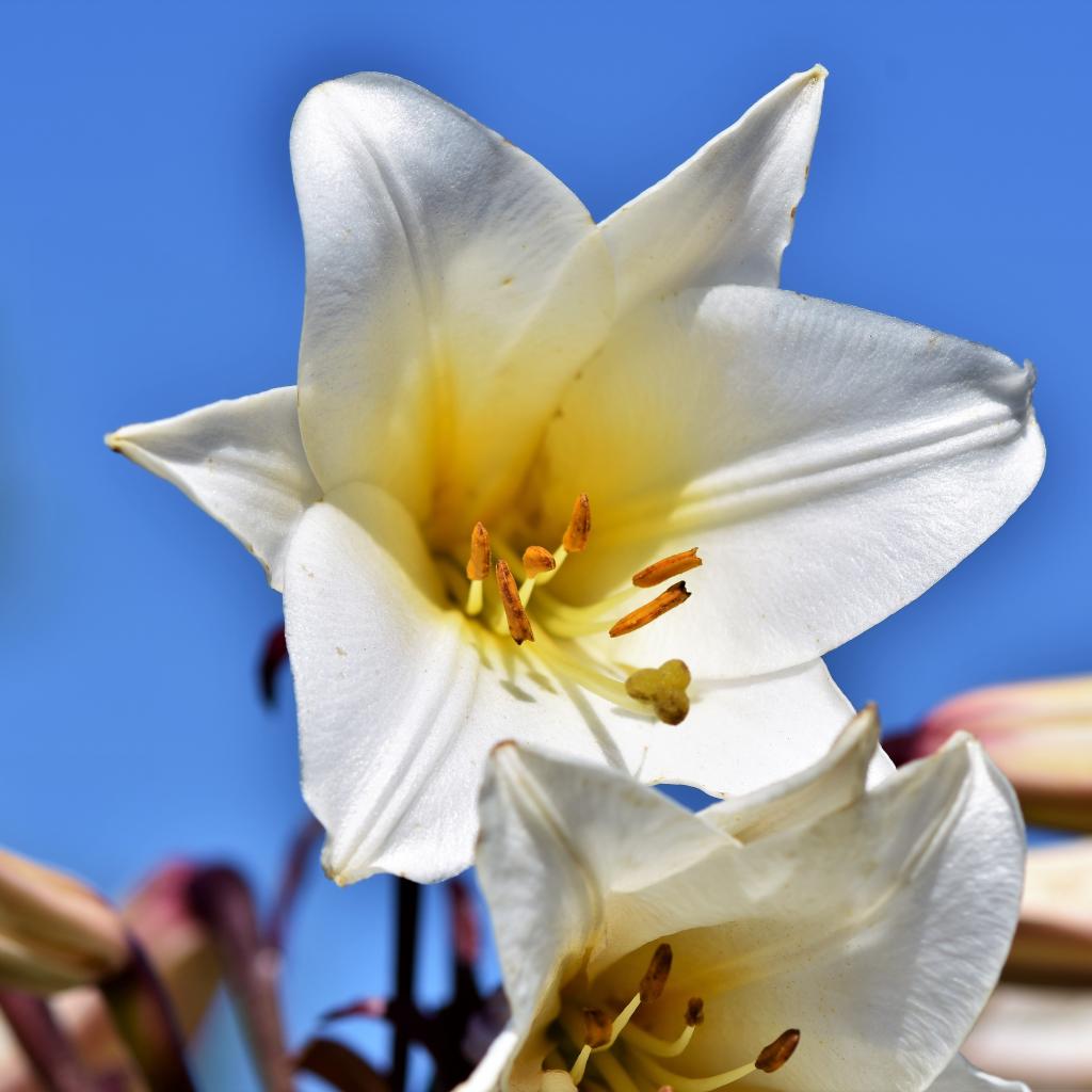 Обои Белый красивый цветок лилии на фоне голубого неба
