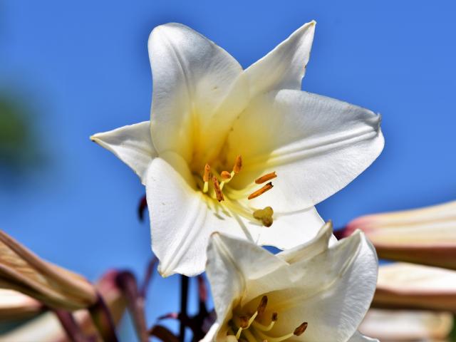Обои Белый красивый цветок лилии на фоне голубого неба