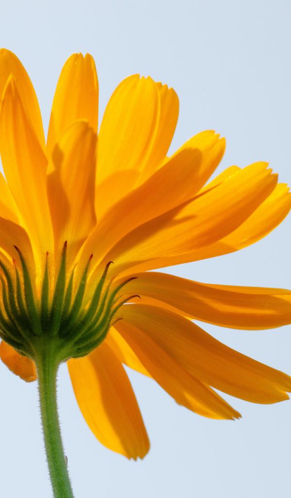 Обои Оранжевый цветок ноготки на сером фоне
