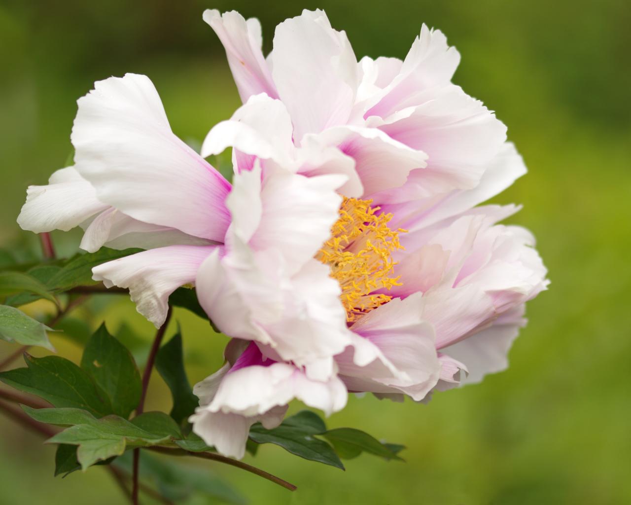 Обои Розовый цветок пиона на зеленом фоне крупным планом