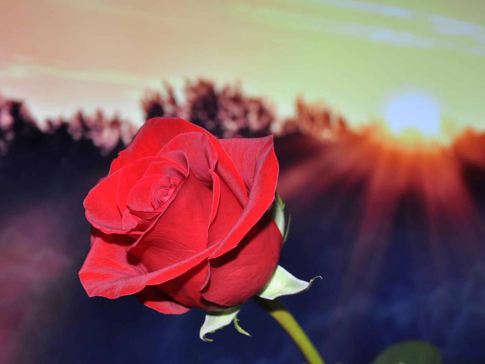Обои Алая роза в руке в лучах солнца