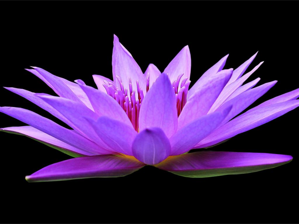 Обои Красивый цветок лотоса на черном фоне крупным планом