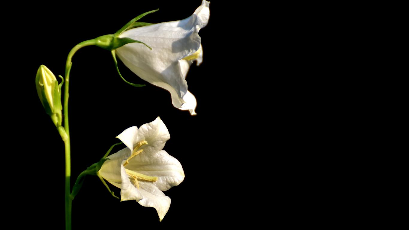 Обои Белые цветы колокольчика на черном фоне