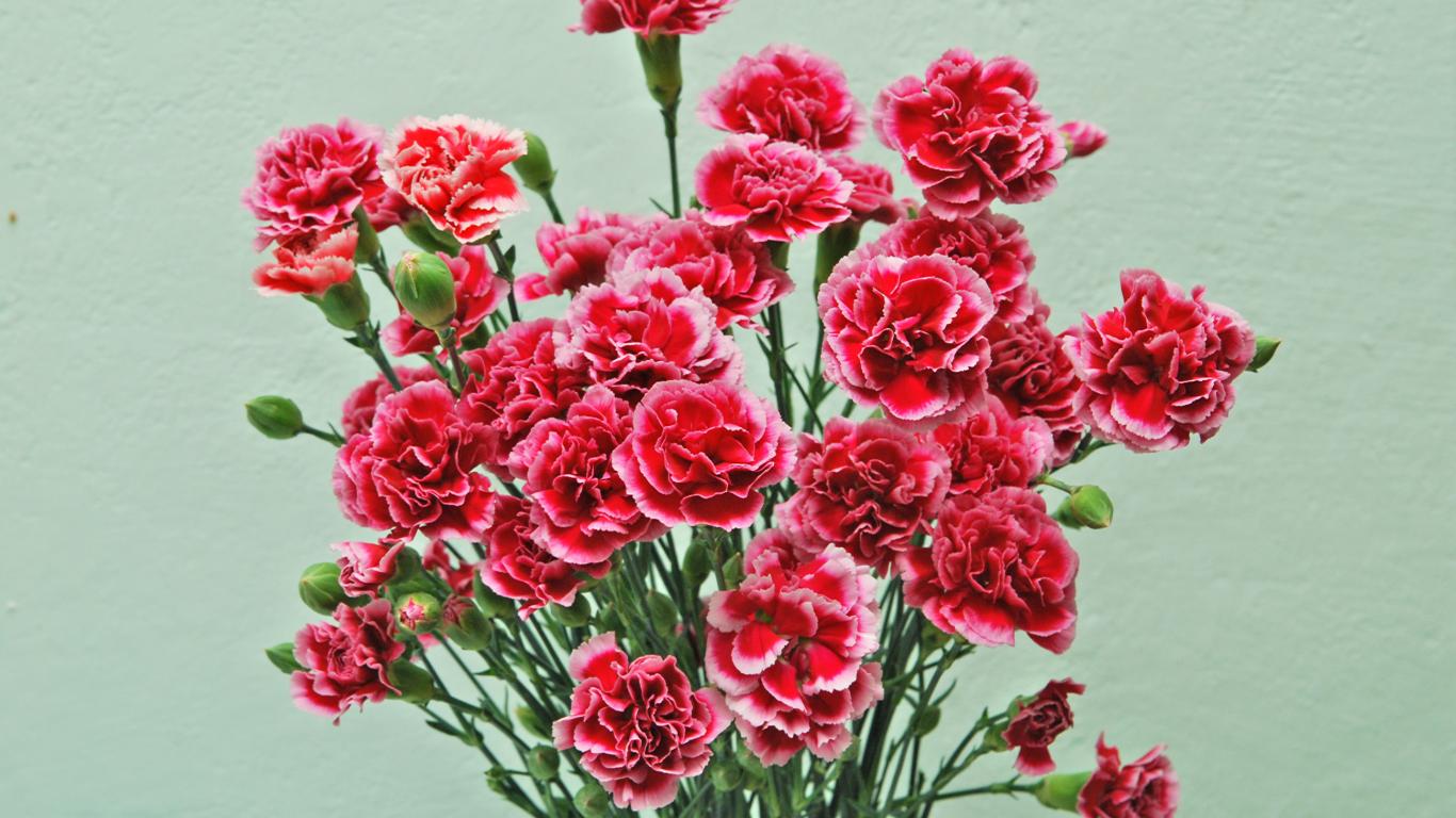 Обои Букет розовых цветов гвоздики на сером фоне