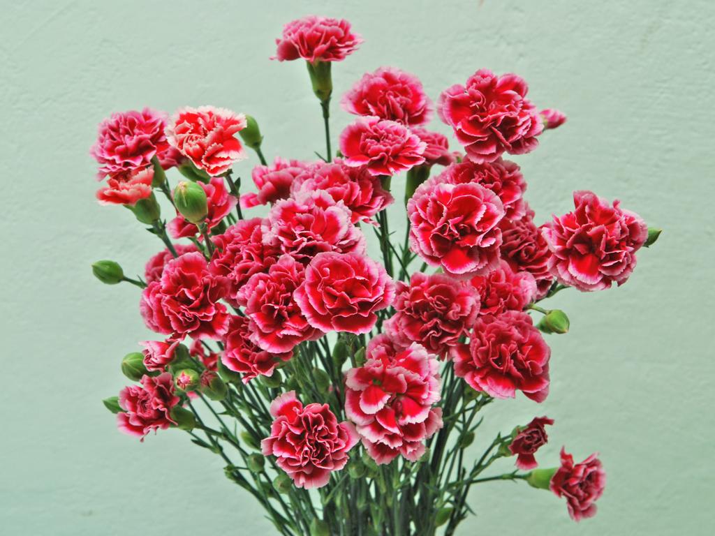 Обои Букет розовых цветов гвоздики на сером фоне