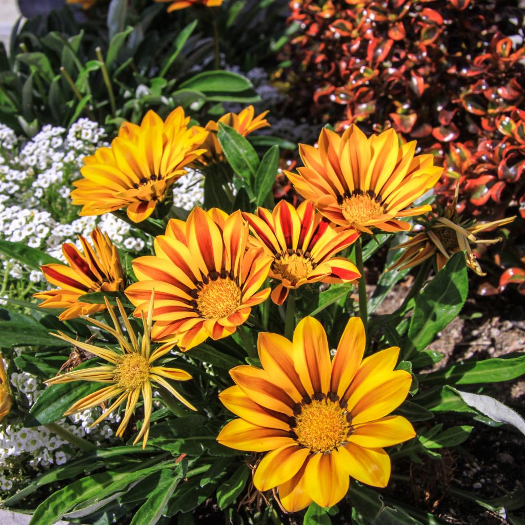 Обои Красивые оранжевые цветы газания на клумбе