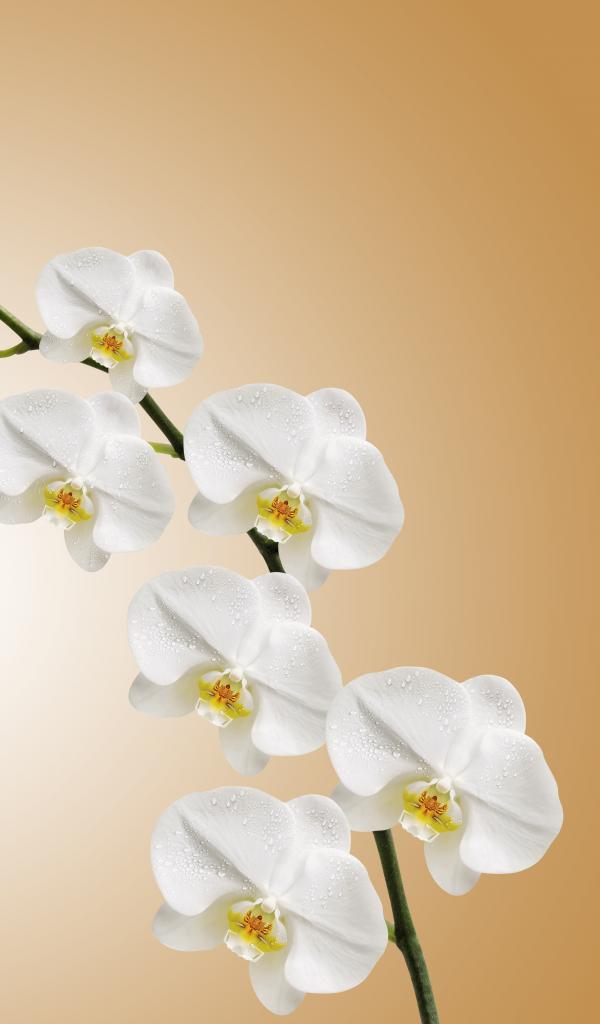 Обои Ветка белых цветов орхидеи на коричневом фоне