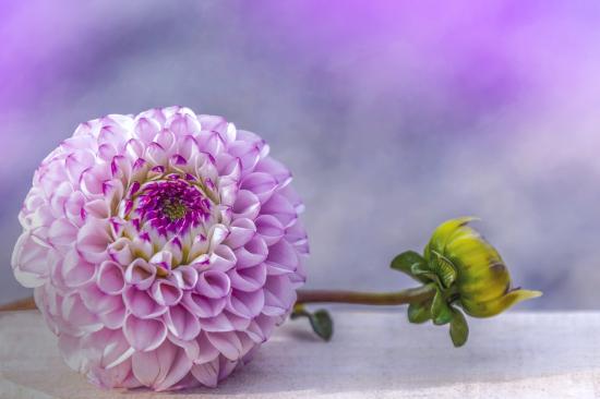 Обои Красивый пурпурный цветок георгина с бутоном